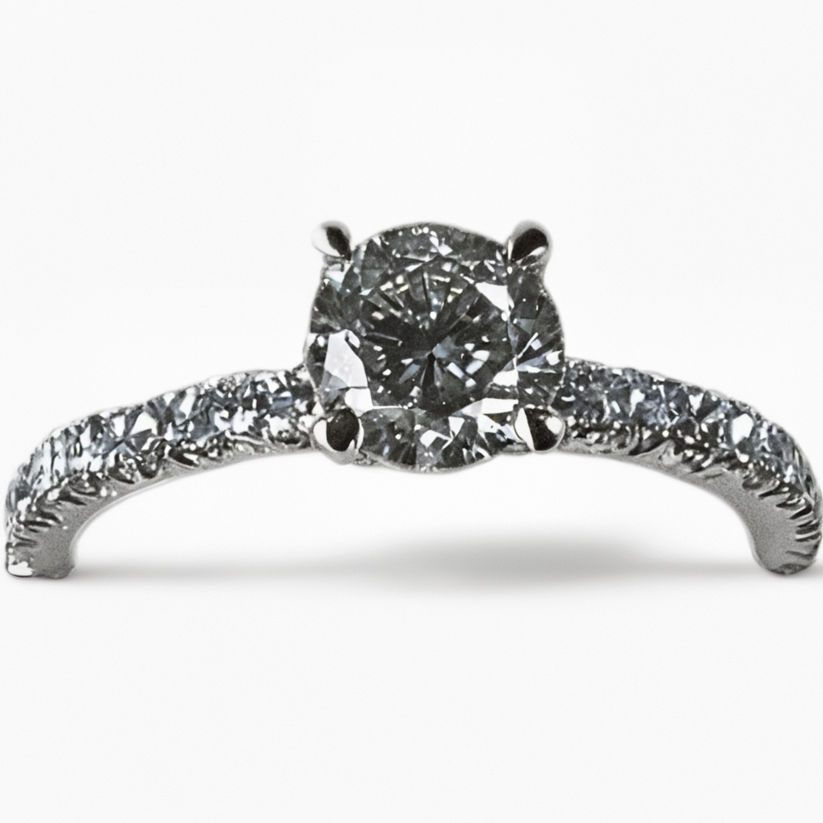 Elegancia sofisticada: Solitario con diamante central brillante y pavé lateral que aporta luz y fineza.