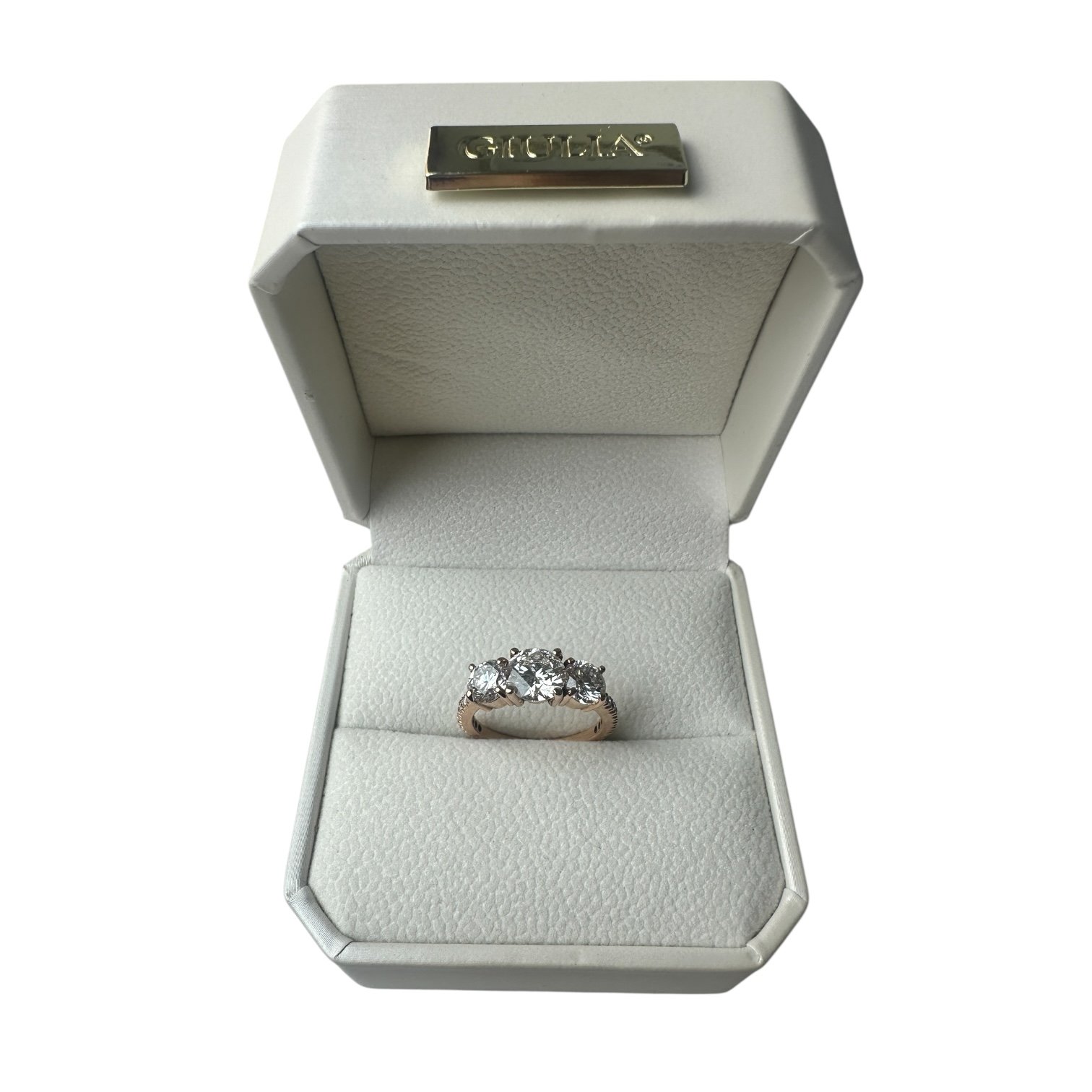 El Anillo en Oro Rosado 18 Kilates con 4.5 Ct de Diamantes de Laboratorio de GIULIA GOLD es una obra de alta joyería diseñada para mujeres que aman verse y sentirse extraordinarias. Su diseño de triple piedra central, acompañado por un pavé lateral delicado pero brillante, crea un resplandor espectacular que captura la luz desde todos los ángulos.