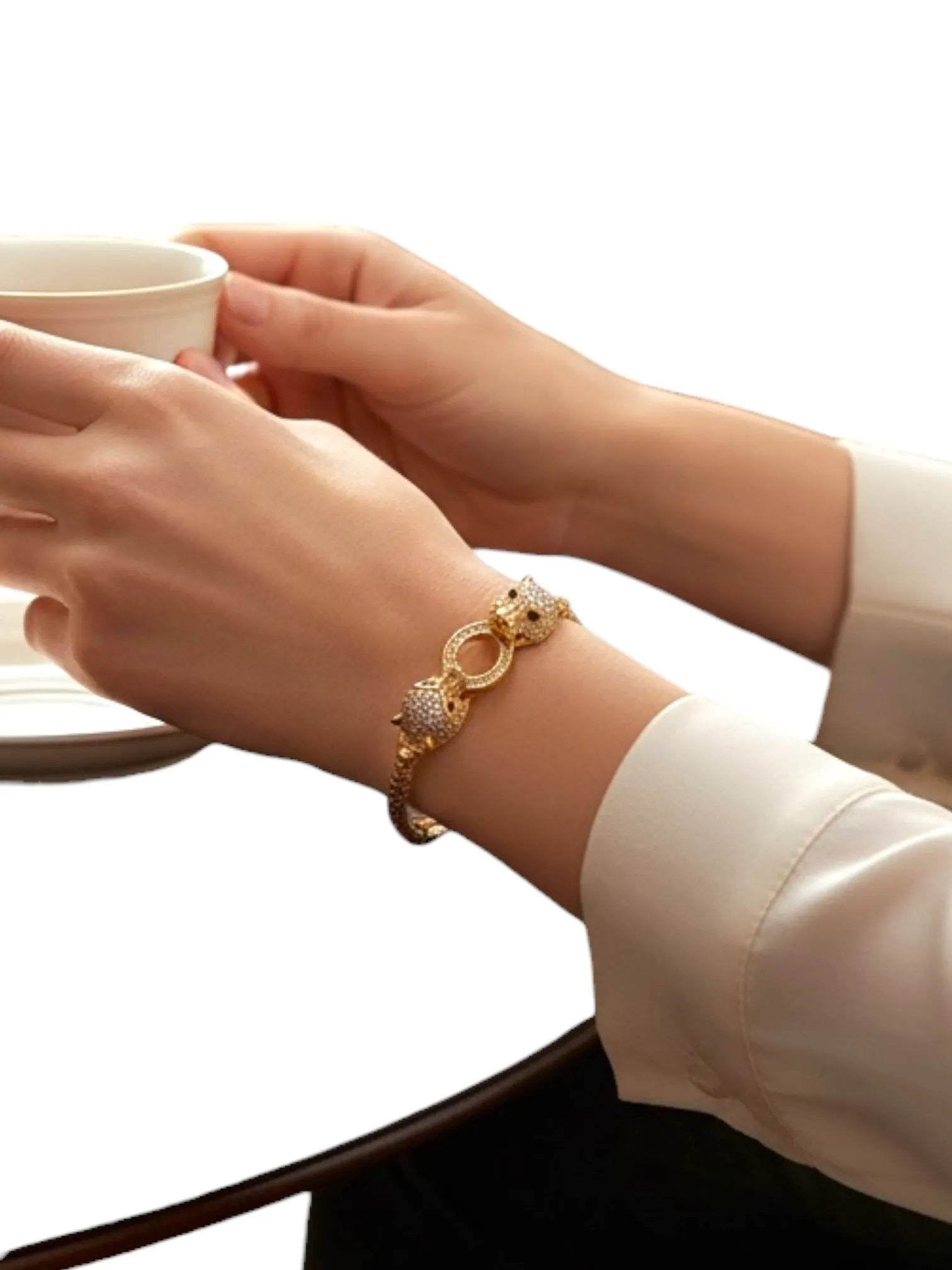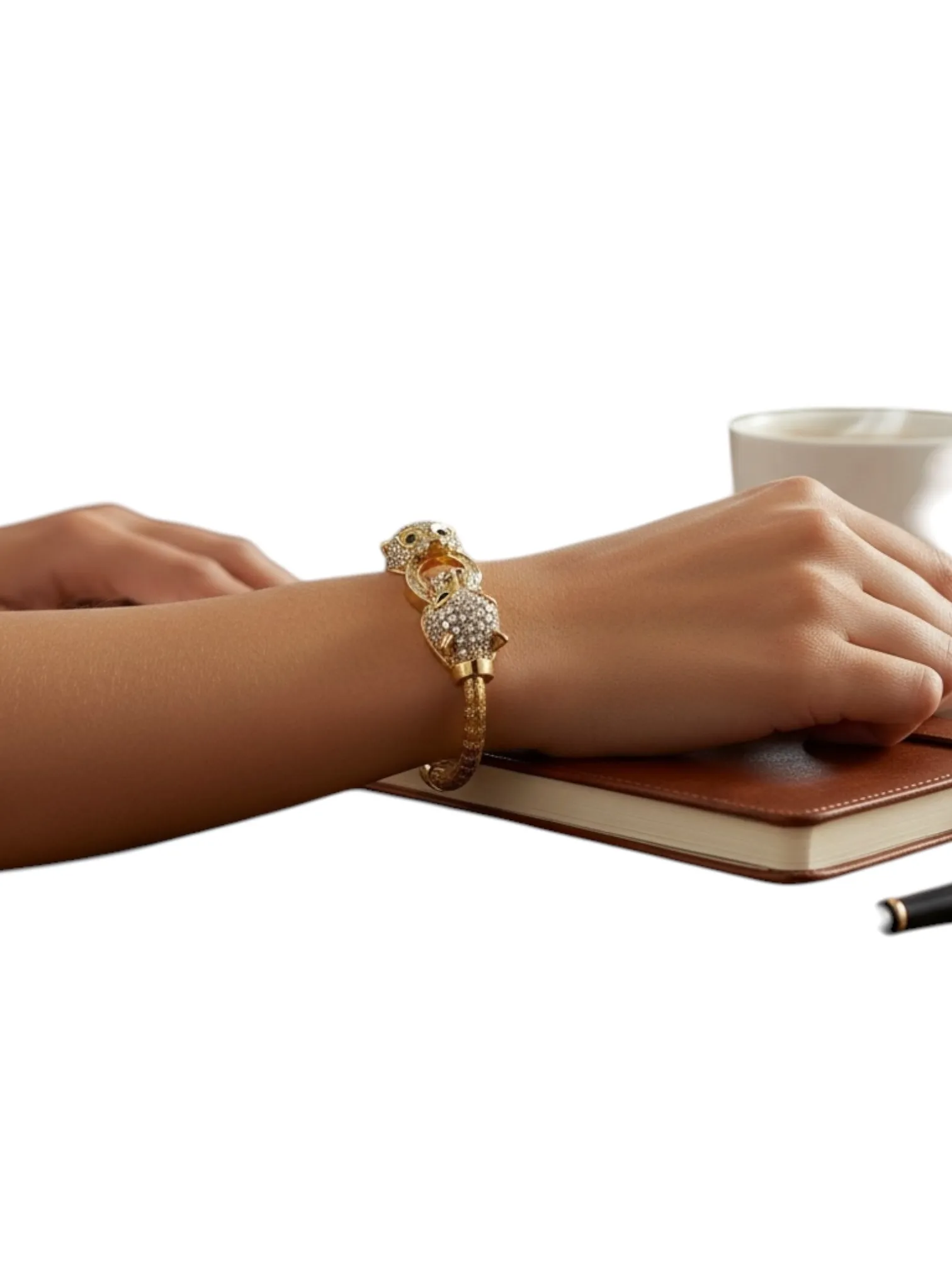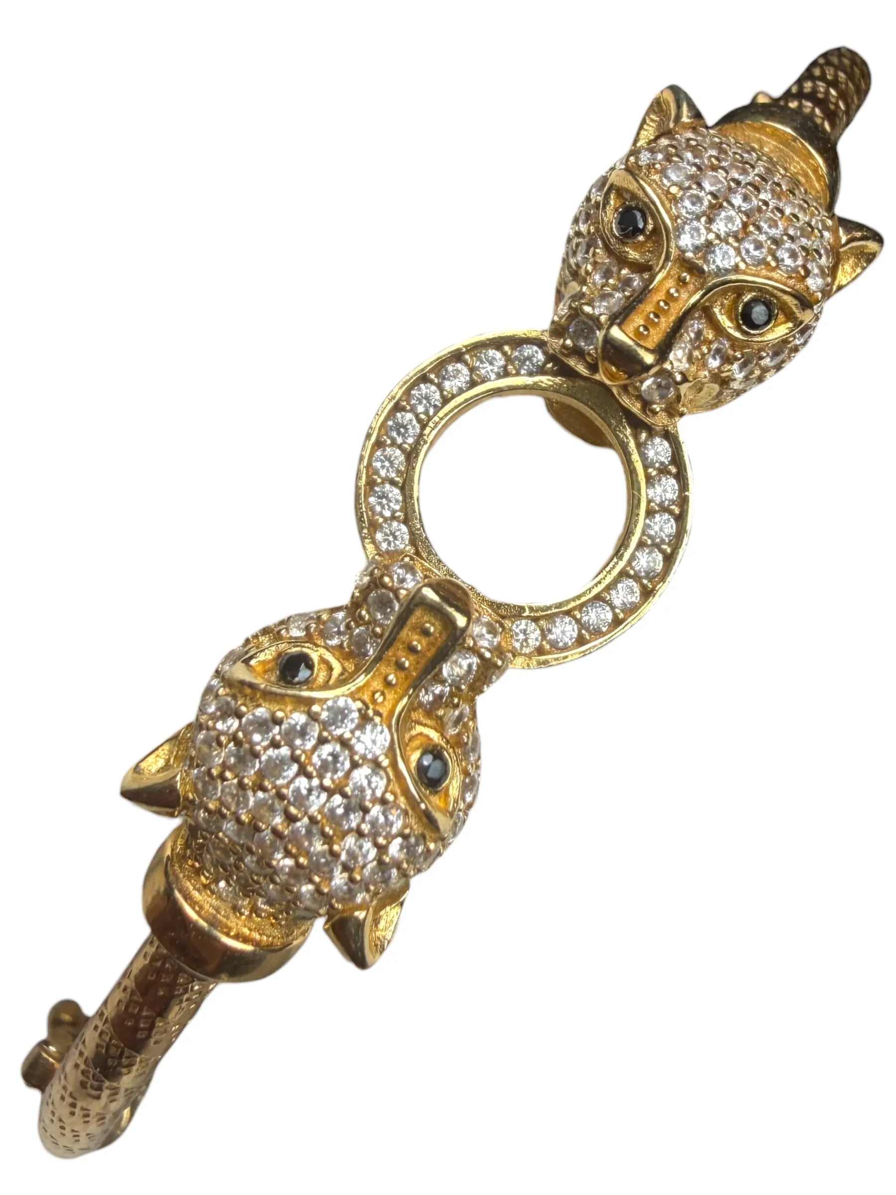 Su diseño de doble cabeza de pantera simboliza fuerza, protección y control, convirtiéndola en una joya con carácter y significado. Cada detalle ha sido cuidadosamente trabajado para lograr un acabado sofisticado que resalta la esencia del lujo moderno.