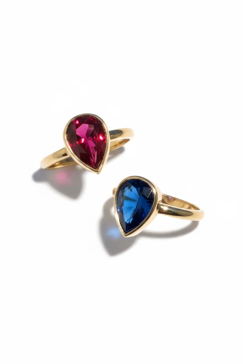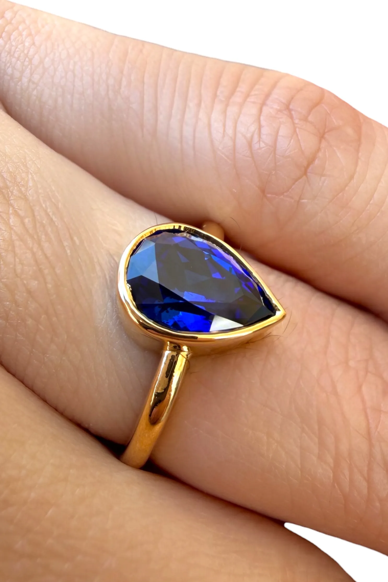 El Anillo Zafiro Pera Oro 18K Bisel (Pear Sapphire Ring 18K Gold) representa la elegancia en su forma más pura.