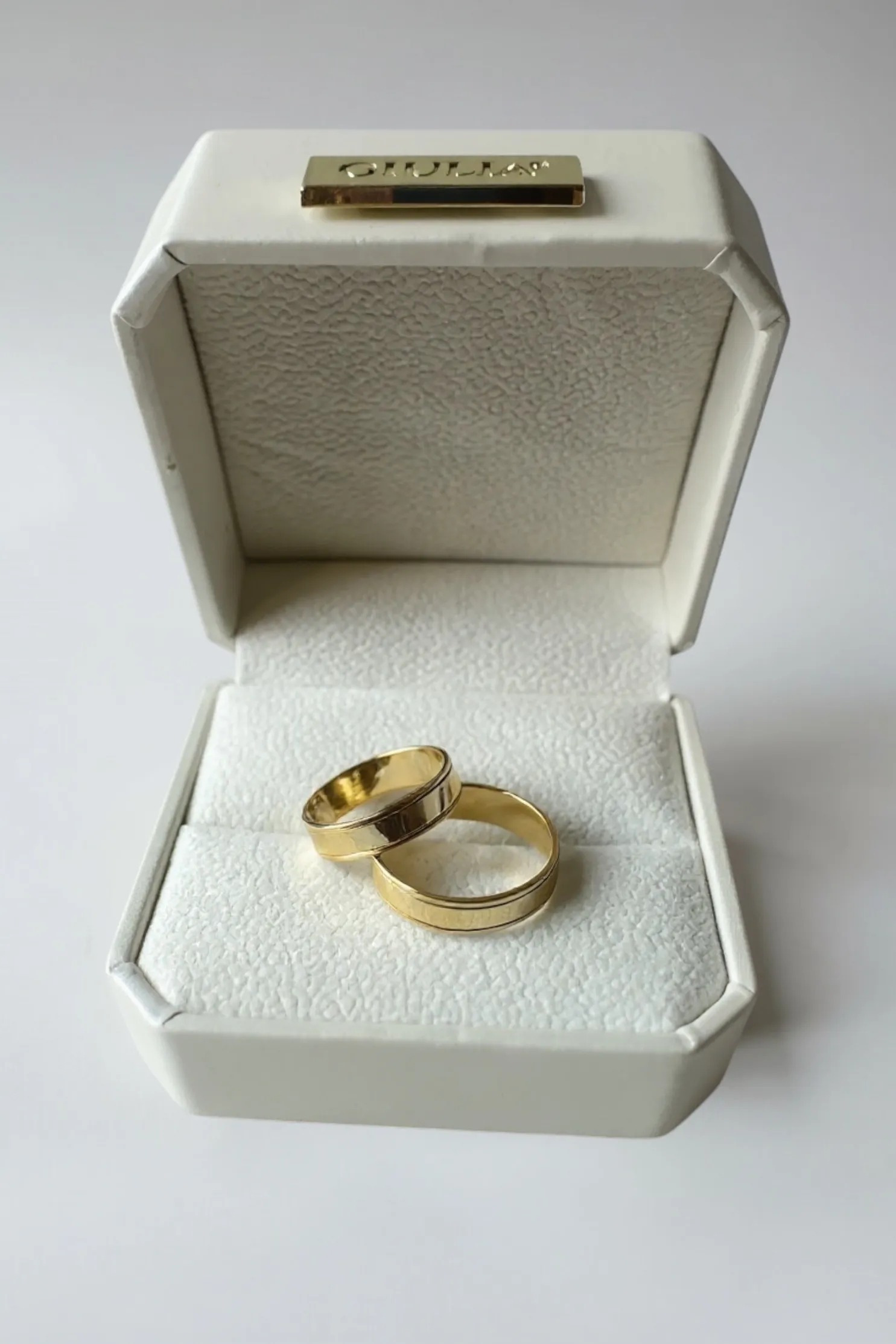 Fabricadas en oro amarillo sólido de 18 kilates (750), estas argollas están diseñadas para durar toda la vida, acompañando cada etapa, cada cambio y cada historia que construyan juntos.