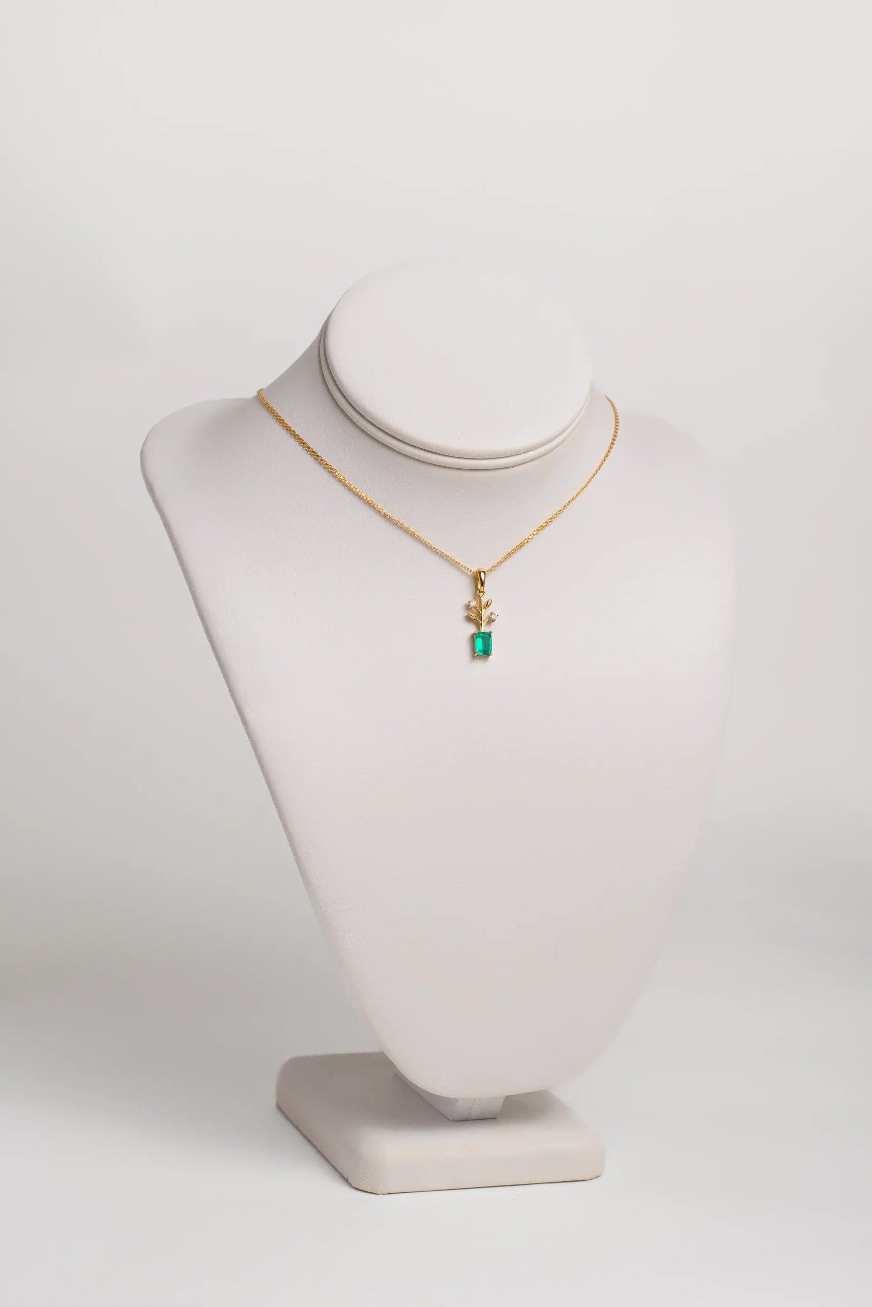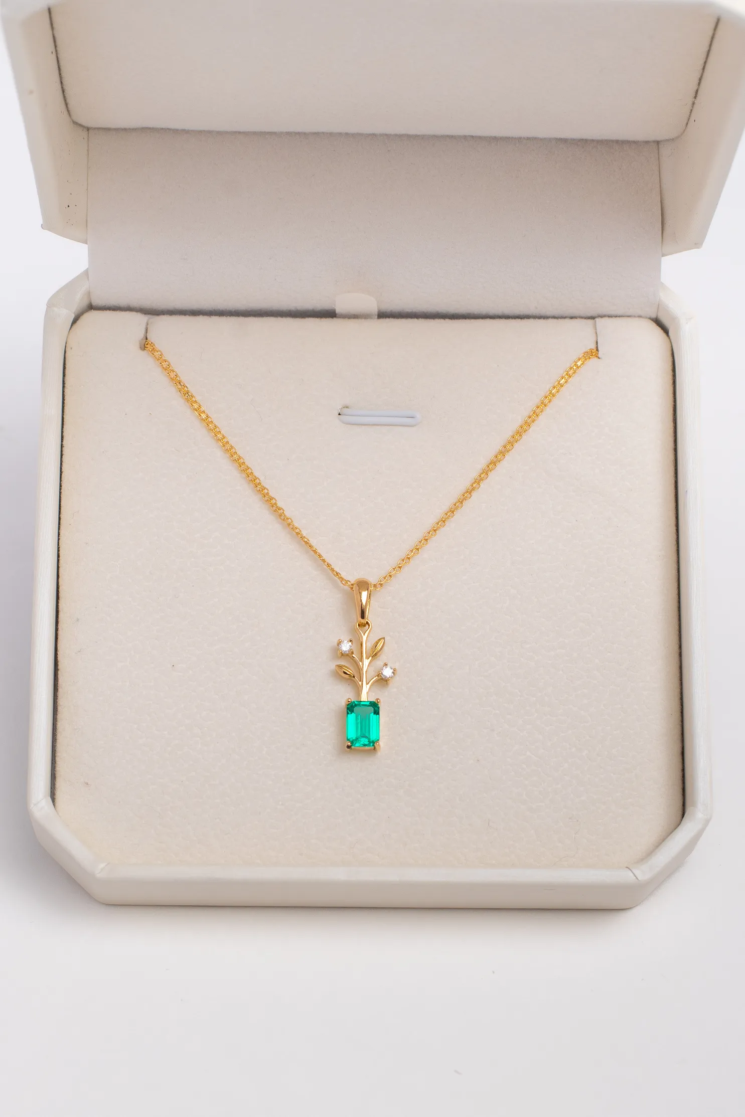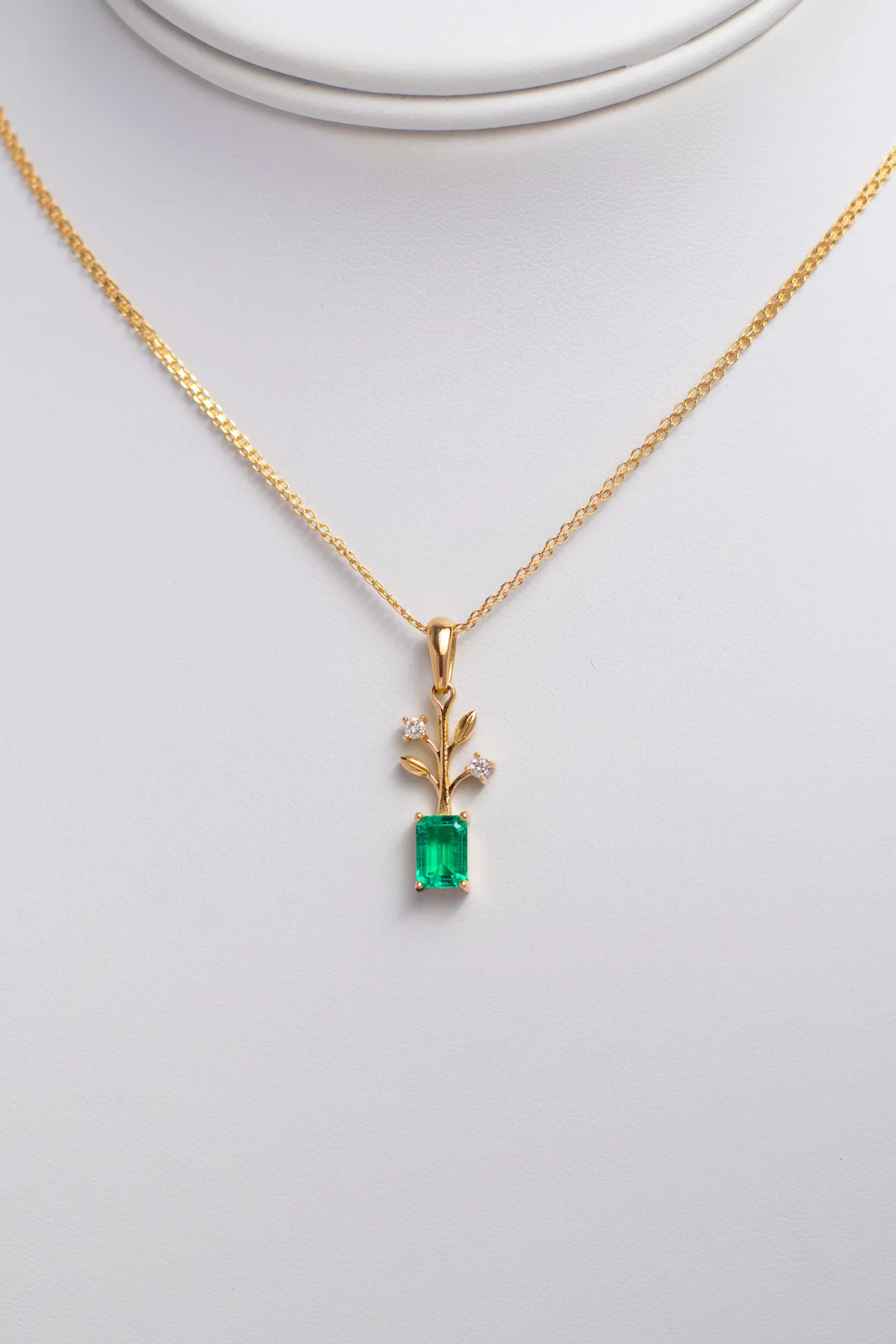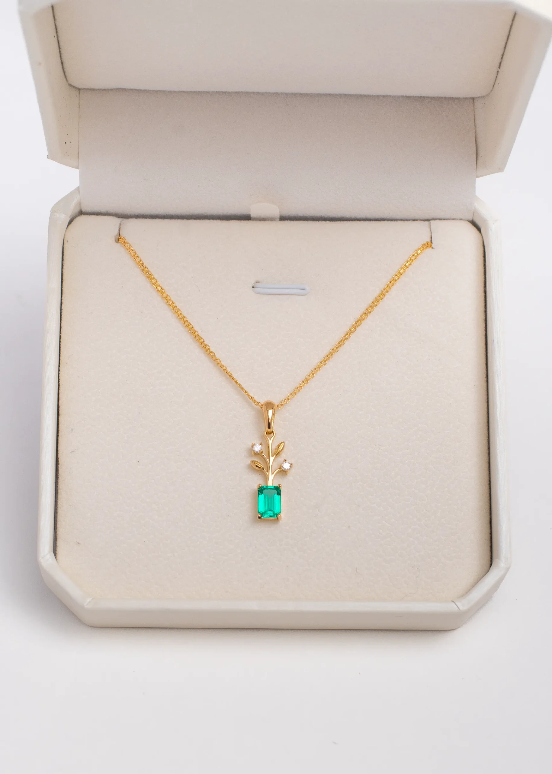 Dije Brote en oro 18K con esmeralda de laboratorio corte esmeralda y diamantes. Una joya inspirada en el crecimiento, la esperanza y el renacimiento.