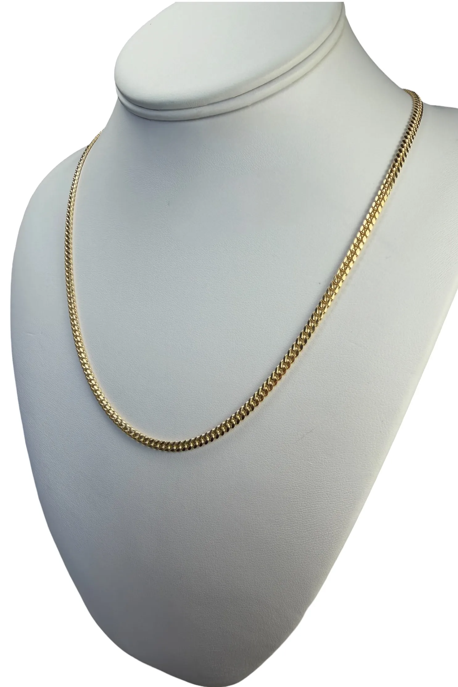 La Cadena Cubana Sólida Oro 18K 3mm Italiana para Caballero es la definición de elegancia moderna en su forma más pura.