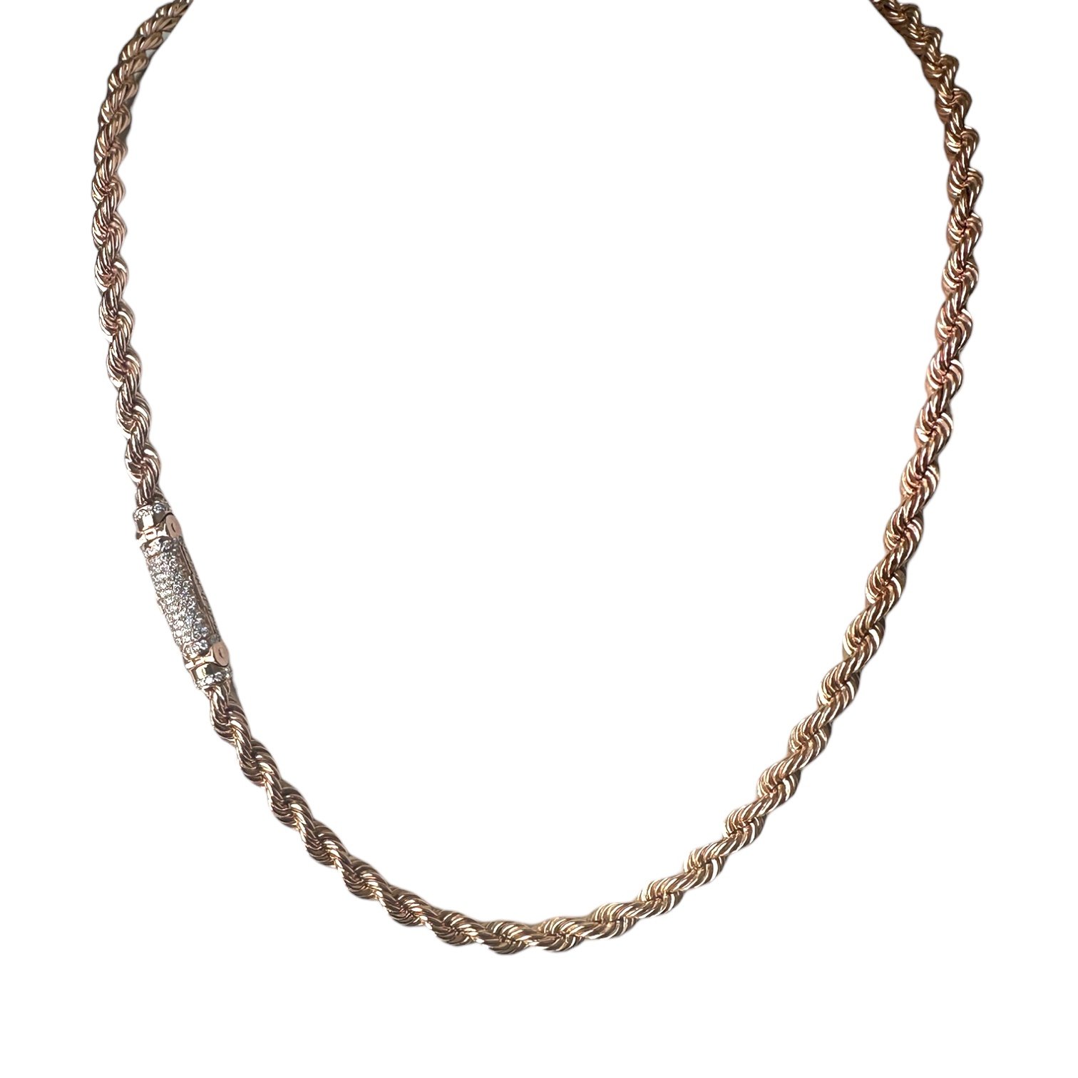 La Cadena Rope en Oro Rosado 14K con Cierre de Diamantes Naturales de GIULIA GOLD es mucho más que una joya: es una declaración de estilo y significado. Su diseño trenzado estilo rope simboliza fuerza, unión y la belleza de los lazos que elegimos conservar. El cierre cilíndrico con diamantes naturales añade un destello irresistible que marca la diferencia entre lo cotidiano y lo extraordinario.