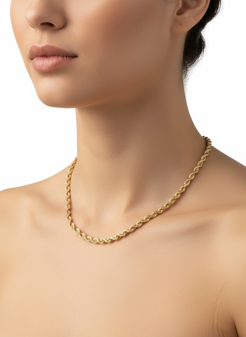 Elegancia sofisticada: Diseño rope trenzado con brillo uniforme que aporta presencia y estilo clásico.