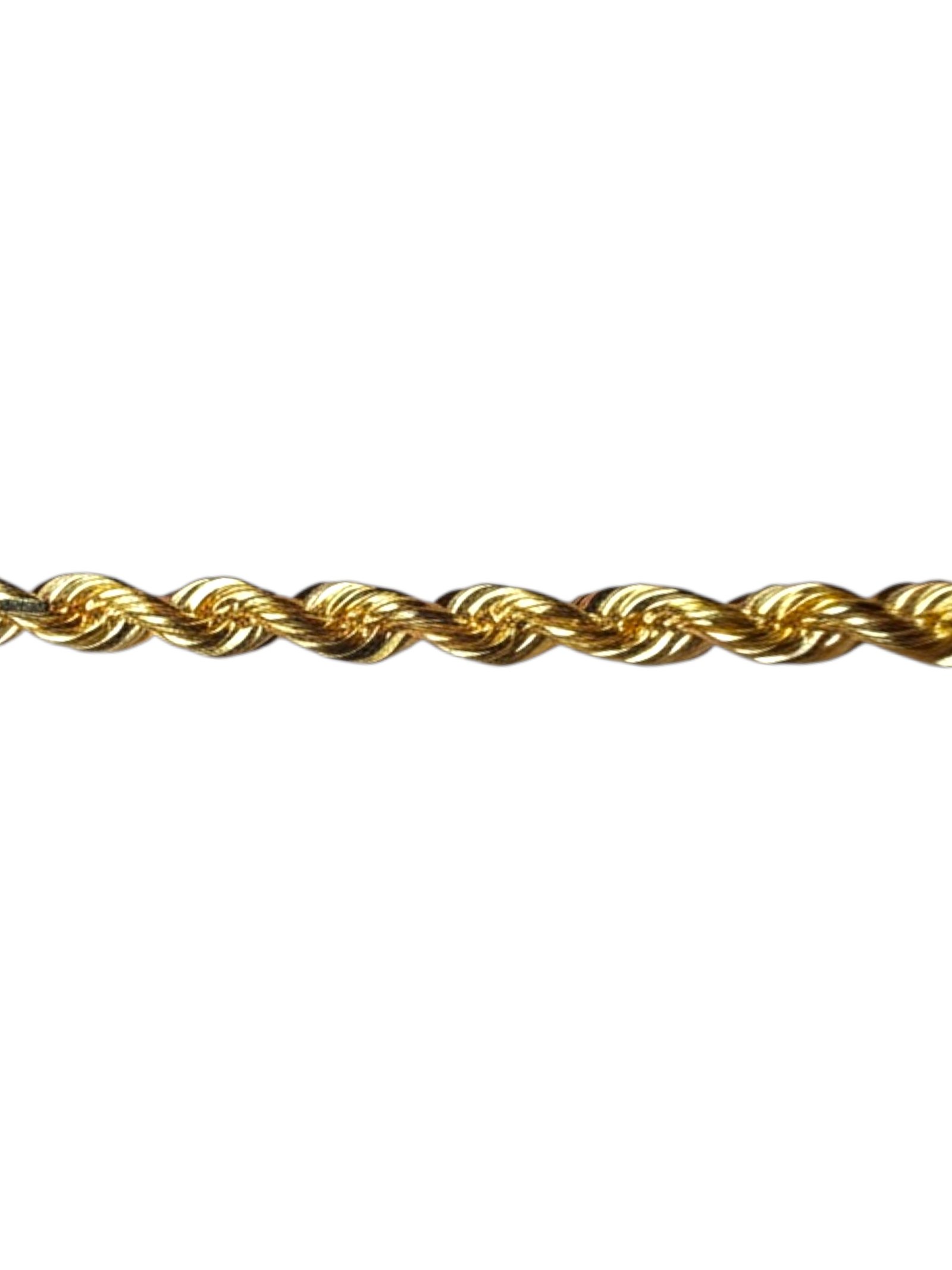 Su diseño tipo rope (trenzado) está compuesto por eslabones entrelazados que crean un efecto de brillo continuo, reflejando la luz desde todos los ángulos y aportando una presencia sofisticada sin necesidad de excesos.