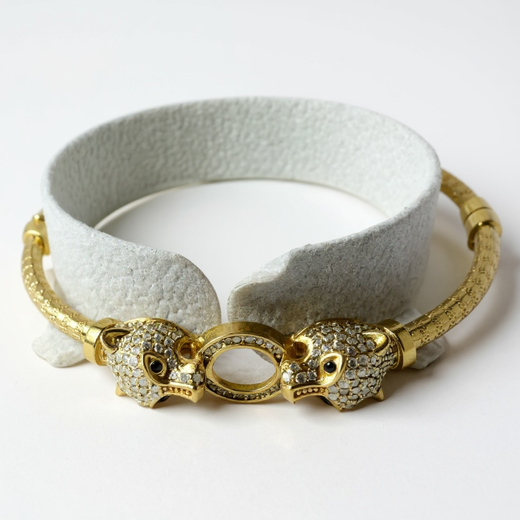 Cabezas de pantera: Diseño doble con pavé de circonias brillantes.